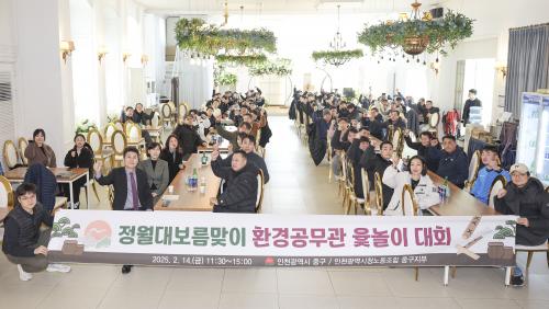 [½Åµ¿¾Æ¹æ¼Û ÀÎõ= À±¹Î½Ä±âÀÚ] ±èÁ¤Çå ÀÎõ Áß±¸Ã»ÀåÀÌ À»»ç³â Á¤¿ù´ëº¸¸§À» ¸Â¾Æ Áß±¸ ȯ°æ°ø¹«°ü û¿ìȸ°¡ ÁÖ°üÇÑ À·³îÀÌ ´ëȸ¿¡ ÇÔ²²Çϸç ȯ°æ°ø¹«°üµé°ú ¼ÒÅëÇÏ´Â ½Ã°£À» °¡Á³´Ù. ÀüÅë ³îÀ̸¦ ÅëÇØ ÇÑ ÇØÀÇ ¾×¿îÀ» Åо°í ¼­·ÎÀÇ º¹À» ±â¿øÇϸç È­ÇÕÀ» ´ÙÁö¡¦