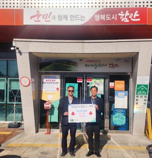 [½Åµ¿¾Æ¹æ¼Û °æ³²ÇÔ¾È=À̽ŵ¿±âÀÚ] ÇԾȱº ÀÌ³ëÆ¼¾È°æ ÇÔ¾ÈÄ¥¿øÁ¡ ±èâ¿í ´ëÇ¥´Â 19ÀÏ Ä¥¼­¸éÀ» ¹æ¹®ÇØ ¾î·Á¿î ÀÌ¿ôÀ» À§ÇØ ¾È°æÄíÆù 20Àå(100¸¸ ¿ø »ó´ç, 1ÀÎ 5¸¸ ¿ø)À» Àü´ÞÇß´Ù. ±èâ¿í ´ëÇ¥´Â ¡°À̹ø ¾È°æ Áö¿øÀ¸·Î ÁÖº¯ÀÇ ¾î·Á¿î ÀÌ¿ôµéÀÌ ¹àÀº ´«À¸·Î ¼¼»óÀ»¡¦