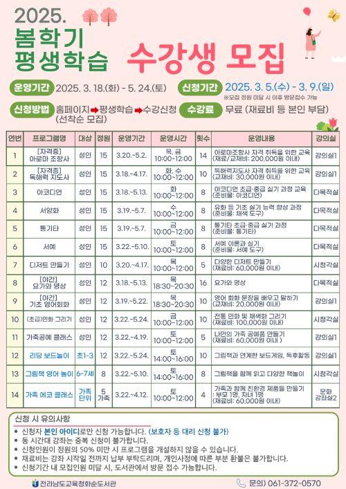 [½Åµ¿¾Æ¹æ¼Û Àü³²È­¼ø=À̽ŵ¿±âÀÚ] Àü¶ó³²µµ±³À°Ã»È­¼øµµ¼­°üÀº 2025³âµµ º½Çб⸦ ¸Â¾Æ 3¿ù 18ÀÏ(È­)ºÎÅÍ 5¿ù 24ÀÏ(Åä)±îÁö ´Ù¾çÇÑ Æò»ýÇнÀ ÇÁ·Î±×·¥À» ¸¶·ÃÇß´Ù. ƯÈ÷ ¿ÃÇØ´Â Çлý°ú À¯¾Æ¸¦ À§ÇÑ ÇÁ·Î±×·¥ÀÌ »õ·Ó°Ô Ãß°¡µÇ¾î ´õ¿í Æø³ÐÀº ±³À° ȯ°æÀ» Á¦°øÇÑ´Ù. ¡¦