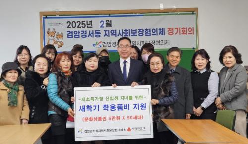 [½Åµ¿¾Æ¹æ¼Û ÀÎõ= À±¹Î½Ä±âÀÚ] °Ë¾Ï°æ¼­µ¿ Áö¿ª»çȸº¸ÀåÇùÀÇü(µ¿Àå ȲÀμ±, °øµ¿À§¿øÀå Á¤ÃáÀÚ)´Â Áö³­ 20ÀÏ »õÇб⸦ ¸Â¾Æ °ü³» Àú¼Òµæ ½ÅÀÔ»ý 50¸íÀ» ´ë»óÀ¸·Î °¡±¸´ç 5¸¸¿ø »ó´çÀÇ ¹®È­»óǰ±ÇÀ» Áö¿øÇß´Ù°í 21ÀÏ ¹àÇû´Ù. ¡®»õÇбâ Çпëǰºñ Áö¿ø»ç¾÷¡¯Àº °Ë¡¦