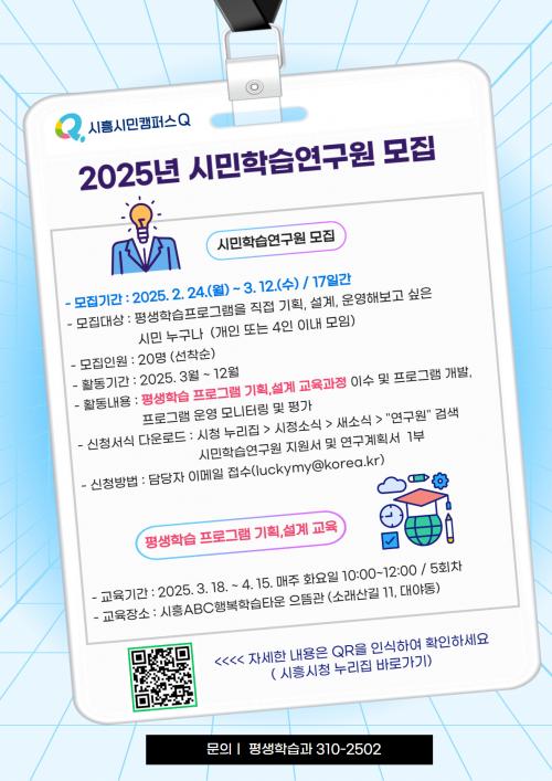 [½Åµ¿¾Æ¹æ¼Û ½ÃÈï½Ã=À̽ŵ¿±âÀÚ] ½ÃÈï½Ã´Â Áö¼Ó °¡´ÉÇÑ Æò»ýÇнÀ »ýÅÂ°è ±¸ÃàÀ» À§ÇØ ½Ã¹ÎÀÌ ÁÖµµÀûÀ¸·Î Æò»ýÇнÀ ÇÁ·Î±×·¥À» ±âȹÇÒ ¡®½Ã¹ÎÇнÀ¿¬±¸¿ø¡¯À» 3¿ù 12ÀϱîÁö ¸ðÁýÇÑ´Ù. ÀÏ»ó ¼Ó ¹®Á¦¸¦ ±³À°Àû ¹æ¹ýÀ¸·Î ÇØ°áÇϰíÀÚ ÇÏ´Â ½Ã¹ÎÀ̶ó¸é ´©±¸³ª ½ÅûÇÒ ¼ö ÀÖ´Ù¡¦