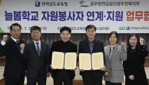 [½Åµ¿¾Æ¹æ¼Û Àü³²=À̽ŵ¿±âÀÚ] Àü¶ó³²µµ±³À°Ã»°ú °ø¹«¿ø¿¬±Ý°ø´Ü ±¤ÁÖÀüºÏÁöºÎ´Â 25ÀÏ Àü¶ó³²µµ±³À°Ã» ºñÁî´Ï½º½Ç¿¡¼­ ¾÷¹«Çù¾àÀ» ü°áÇϰí, ´Ãº½Çб³¿¡ ÅðÁ÷°ø¹«¿ø ÀÚ¿øºÀ»çÀÚ ÀηÂÇ®À» ¿¬°è¡¤Áö¿øÇϱâ·Î Çß´Ù. À̹ø Çù¾àÀº ÅðÁ÷°ø¹«¿øÀÇ »çȸÀû ¿ªÇÒÀ» È®´ëÇϰí, °ø¡¦