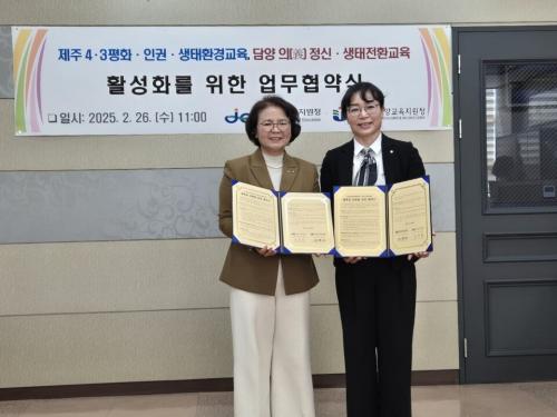 [½Åµ¿¾Æ¹æ¼Û Àü³²´ã¾ç=À̽ŵ¿±âÀÚ] ´ã¾ç±³À°Áö¿øÃ»Àº ¼­±ÍÆ÷½Ã±³À°Áö¿øÃ»°ú 26ÀÏ, ÆòÈ­ÀαDZ³À°°ú »ýÅÂȯ°æ±³À°À» À§ÇÑ ¾÷¹«Çù¾à(MOU)À» ü°áÇß´Ù. À̹ø Çù¾àÀ» ÅëÇØ µÎ ±â°üÀº ÆòÈ­¡¤»ýÅÂÀüȯ±³À° Çлý ±³·ù ¹× ±³¿ø ¿¬¼ö Ȱµ¿ Áö¿ø, Àü³²°ú Á¦ÁÖÁö¿ª ÇöÀå ±³·ù ¹×¡¦
