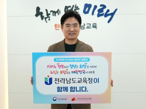 [½Åµ¿¾Æ¹æ¼Û Àü³²=À̽ŵ¿±âÀÚ] ±è´ëÁß Àü¶ó³²µµ±³À°°¨ÀÌ 6ÀÏ ÀúÃâ»ý¡¤°í·ÉÈ­¿¡ µû¸¥ Àα¸ °¨¼Ò ¹®Á¦¸¦ ¾Ë¸®°í »çȸÀû ÀνÄÀ» Á¦°íÇϱâ À§ÇÑ ¡®Àα¸¹®Á¦ ÀÎ½Ä °³¼± ¸±·¹ÀÌ Ä·ÆäÀΡ¯¿¡ µ¿ÂüÇß´Ù. º¸°Çº¹ÁöºÎ¿Í Çѱ¹º¸°Çº¹ÁöÀÎÀç¿øÀÌ °øµ¿ ÃßÁøÇÏ´Â À̹ø Ä·ÆäÀÎÀº Àα¸°¨¡¦