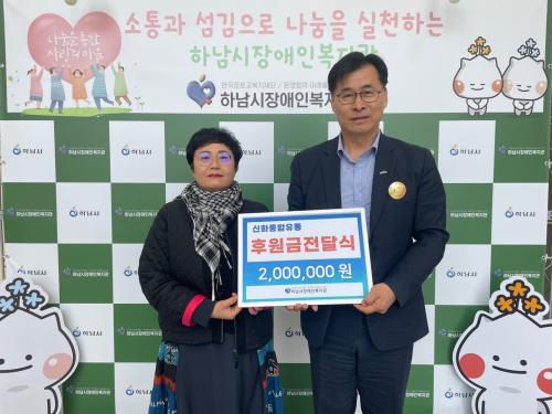[½Åµ¿¾Æ¹æ¼Û Çϳ²½Ã=À̽ŵ¿±âÀÚ] Çϳ²½ÃÀå¾ÖÀκ¹Áö°üÀº ¡°Á¦45ȸ Àå¾ÖÀÎÀÇ Çà»ç¡±¸¦ ±â³äÇÏ¿© ½ÅÈ­Á¾ÇÕÀ¯Åë¿¡¼­ 200¸¸¿øÀ» ±âºÎÇß´Ù°í ¹àÇû´Ù. ½ÅÈ­Á¾ÇÕÀ¯ÅëÀº À۳⿡µµ Àå¾ÖÀÎÀÇ ³¯ Çà»ç¸¦ À§ÇÏ¿© ±âºÎ±Ý°ú ½Ò 50Æ÷¸¦ ÈÄ¿øÇÏ¿´À¸¸ç ¿ÃÇØµµ Àå¾ÖÀÎÀÇ ³¯ Çà»ç¿î¿µÀ» À§ÇÏ¡¦
