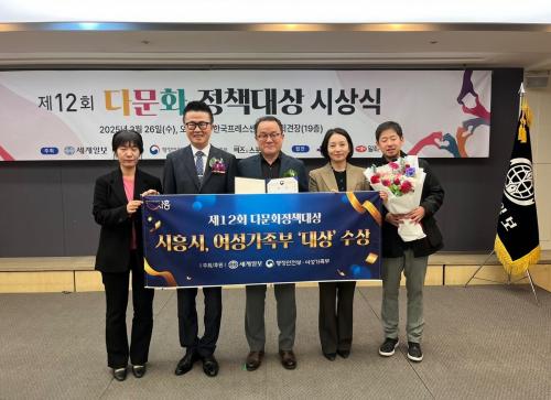 [½Åµ¿¾Æ¹æ¼Û ½ÃÈï½Ã=À̽ŵ¿±âÀÚ] ½ÃÈï½Ã°¡ ´Ù¹®È­ ¹× ¿Ü±¹ÀÎÁÖ¹ÎÀÇ Áö¿ª»çȸ ¾ÈÁ¤ÀûÀÎ Á¤ÂøÀ» À§ÇØ ÃßÁøÇÑ °¢Á¾ Á¤Ã¥ ¼º°ú¸¦ ÀÎÁ¤¹Þ¾Æ Áö³­ 3¿ù 26ÀÏ Çѱ¹ÇÁ·¹½º¼¾ÅÍ¿¡¼­ ¿­¸° ¡®Á¦12ȸ ´Ù¹®È­Á¤Ã¥´ë»ó¡¯ ½Ã»ó½Ä¿¡¼­ ¿©¼º°¡Á·ºÎ Àå°ü»ó(´ë»ó)À» ¹Þ¾Ò´Ù. ´Ù¹®È­Á¤Ã¥´ë¡¦