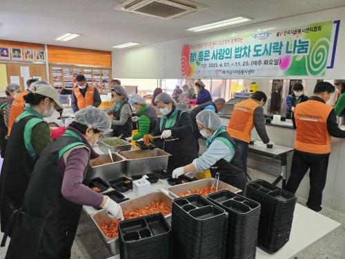 [½Åµ¿¾Æ¹æ¼Û Çϳ²½Ã=À̽ŵ¿±âÀÚ] (Àç)Çϳ²½ÃÀÚ¿øºÀ»ç¼¾ÅÍ´Â Áö³­ 1ÀÏ, 2025³â Âü ÁÁÀº »ç¶ûÀÇ ¹äÂ÷ »ó¹Ý±â ¿î¿µÀ» ½ÃÀÛÇß´Ù. À̳¯ (Àç)Çϳ²½ÃÀÚ¿øºÀ»ç¼¾ÅÍ °øÀ¯Á¶¸®½Ç¿¡¼­ »õ¸¶À»ºÎ³àȸ°¡ À½½Ä Á¶¸® ¹× µµ½Ã¶ô Æ÷ÀåÀ» °ü³» Àú¼Òµæ°èÃþ 200¿©¸í¿¡°Ô µµ½Ã¶ôÀ» ³ª´©¾î ¡¦