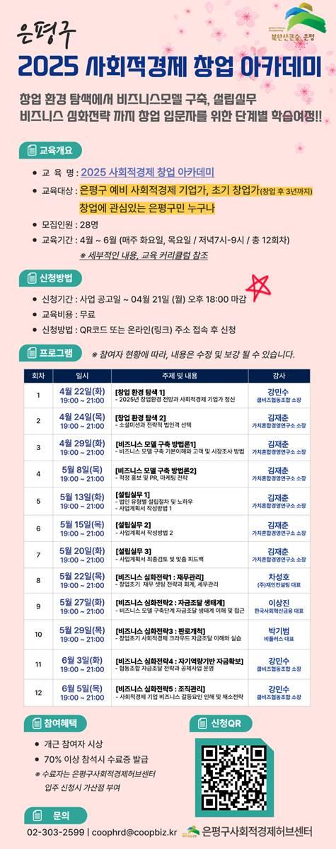[½Åµ¿¾Æ¹æ¼Û ÀºÆò±¸=À̽ŵ¿±âÀÚ] ÀºÆò±¸´Â ¿À´Â 22ÀϺÎÅÍ »çȸÀû°æÁ¦Çãºê¼¾ÅÍ¿¡¼­ »çȸÀû°æÁ¦±â¾÷ â¾÷À» ÁغñÇÏ´Â ±¸¹ÎÀ» ´ë»óÀ¸·Î ¡®2025³â »çȸÀû°æÁ¦ â¾÷ ¾ÆÄ«µ¥¹Ì¡¯¸¦ ½Ç½ÃÇÑ´Ù°í ¹àÇû´Ù. À̹ø ¾ÆÄ«µ¥¹Ì´Â â¾÷ Áغñ ½Ç¹« ¿ª·®À» °­È­Çϱâ À§ÇØ 12ȸÂ÷ °úÁ¤À¸¡¦