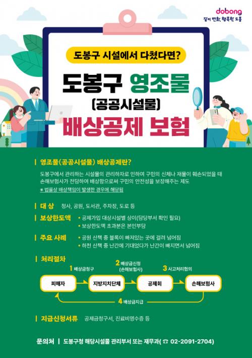 [½Åµ¿¾Æ¹æ¼Û µµºÀ±¸=À̽ŵ¿±âÀÚ] µµºÀ±¸°¡ Çѱ¹Áö¹æÀçÁ¤°øÁ¦È¸ ¡®¿µÁ¶¹°(°ø°ø½Ã¼³¹°) ¹è»ó °øÁ¦º¸Ç衯¿¡ °¡ÀÔ, ±¸ ½Ã¼³¹°¿¡ ÀÇÇÑ ÁÖ¹ÎÀÇ ¾ÈÀü»ç°í ¹ß»ý ½Ã 1Àδç ÃÖ´ë 5¾ï ¿ø±îÁö Áö±ÞÇÑ´Ù°í ¹àÇû´Ù. ¿µÁ¶¹°(°ø°ø½Ã¼³¹°) ¹è»ó °øÁ¦º¸ÇèÀº µµºÀ±¸°¡ °ü¸®ÇÏ´Â ½Ã¼³¹°ÀÇ¡¦