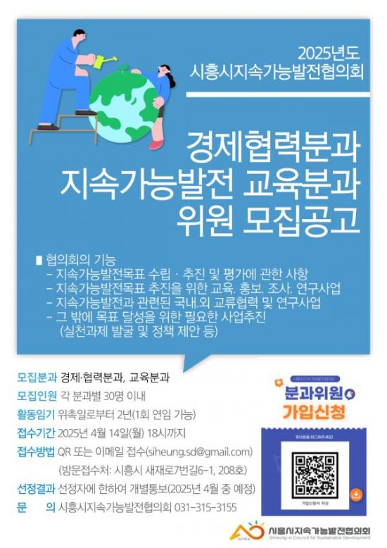 [½Åµ¿¾Æ¹æ¼Û ½ÃÈï½Ã=À̽ŵ¿±âÀÚ] ½ÃÈï½ÃÁö¼Ó°¡´É¹ßÀüÇùÀÇȸ(°øµ¿´ëÇ¥ ÀÓº´Åà ½ÃÈï½ÃÀå, ¿ÀÀο­ ½ÃÈï½ÃÀÇȸ ÀÇÀå, ±èÁÖ¼® ´ëǥȸÀå/ÀÌÇÏ, ½ÃÈï½ÃÁö¼ÓÇù)´Â 2025³â °æÁ¦¤ýÇù·ÂºÐ°ú ¹× Áö¼Ó°¡´É¹ßÀü ±³À°ºÐ°ú À§¿øÀ» °ø°³ ¸ðÁýÇÑ´Ù. ½ÃÈï½ÃÁö¼Ó°¡´É¹ßÀüÇùÀÇȸ´Â Àα¸ Áõ¡¦