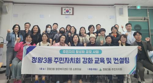 [½Åµ¿¾Æ¹æ¼Û ½ÃÈï½Ã=À̽ŵ¿±âÀÚ] ½ÃÈï½Ã Á¤¿Õ3µ¿ ÁÖ¹ÎÀÚġȸ´Â Áö³­ 4¿ù 10ÀÏ µ¿ ÇàÁ¤º¹Áö¼¾ÅÍ¿¡¼­ ÁÖ¹ÎÀÚġȸ¸¦ ´ë»óÀ¸·Î ÁֹεéÀÇ ÀÚÄ¡ ¿ª·®À» °­È­Çϰí, ´õ ³ªÀº Áö¿ª ¹ßÀüÀ» À§ÇÑ ÀÚÄ¡°èȹ ¼ö¸³À» ¸ñÇ¥·Î ÁÖ¹ÎÃÑȸ ¿ª·®°­È­ ±³À°À» ÁøÇàÇß´Ù. À̹ø ±³À°Àº ¹Î°Çµ¿¡¦