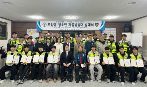 [½Åµ¿¾Æ¹æ¼Û Àü³²°íÈï=¹Ú±¤¿Á±âÀÚ] °íÈﱺ µµ¾çÀ¾ ÀÚÀ²¹æ¹ü´ë´Â Áö¿ª û¼Ò³âµéÀÇ ¾ÈÀüÀÇ½Ä ÇÔ¾ç°ú Áö¿ª»çȸ ¹üÁË ¿¹¹æ Ȱµ¿ÀÇ ÁÖü·Î¼­ ¿ªÇÒÀ» °­È­Çϱâ À§ÇØ µµ¾çÀ¾ û¼Ò³â ÀÚÀ²¹æ¹ü´ë ¹ß´ë½ÄÀ» Áö³­ 12ÀÏ °³ÃÖÇß´Ù°í ¹àÇû´Ù. À̹ø ¹ß´ë½Ä¿¡¼­´Â û¼Ò³â 9¸íÀÌ ÀÚÀ²¹æ¡¦