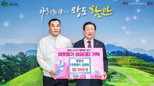 [½Åµ¿¾Æ¹æ¼Û °æ³²ÇÔ¾È=À̽ŵ¿±âÀÚ] ÇԾȱºÀº 16ÀÏ ¿©Ç׸é û·®»ç¿¡¼­ ¾î·Á¿î ¾Æµ¿µé¿¡°Ô ÀüÇØ´Þ¶ó¸ç Çö±Ý 300¸¸ ¿øÀ» ±âŹÇß´Ù°í ¹àÇû´Ù. À̳¯ ±âʽÄÀº ±º¼ö½Ç¿¡¼­ ÁøÇàµÆÀ¸¸ç, Á¶±ÙÁ¦ ÇԾȱº¼ö, û·®»ç û¸í¹ý»ç°¡ Âü¼®Çß´Ù. ±âŹµÈ ¼º±ÝÀº ¾î·Á¿òÀ» °Þ°í ÀÖ´Â Àú¡¦