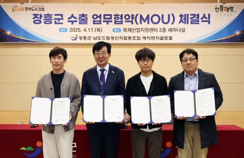[½Åµ¿¾Æ¹æ¼Û Àü³²ÀåÈï=¹Ú±¤¿Á±âÀÚ] ÀåÈﱺÀº ³ó¼ö»ê½Äǰ ¼öÃâ 500¾ï¿ø ´Þ¼ºÀ» À§ÇØ 4¿ù 17ÀϺÎÅÍ 18ÀϱîÁö ÀÌÆ²°£ ÇØ¿Ü¹ÙÀ̾î ÃÊû ¼öÃâ»ó´ãȸ¸¦ °³ÃÖÇß´Ù. ¿ÃÇØ·Î 3ȸ°¸¦ ¸ÂÀº ÇØ¿Ü¹ÙÀ̾î ÃÊû ¼öÃâ»ó´ãȸ´Â ±Û·Î¹ú Æ®·£µå¿¡ ¸Â´Â ¼öÃâ»óǰ ¹ß±¼°ú ÇØ¿Ü½ÃÀå ÁøÃâÀÇ¡¦
