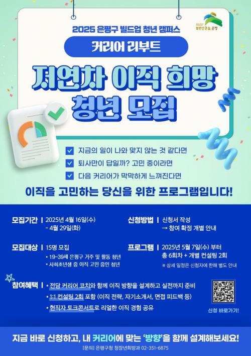 [½Åµ¿¾Æ¹æ¼Û ÀºÆò±¸=À̽ŵ¿±âÀÚ] ¼­¿ï ÀºÆò±¸´Â û³âµéÀÇ ½ÇÁúÀûÀÎ ±¸Á÷ ¿ª·® °­È­¸¦ ½ÇÇöÇÒ ¼ö ÀÖµµ·Ï ±¸Á÷ ´Ü°èº° ¼ö¿ä¿¡ ¸ÂÃá ±³À° ÇÁ·Î±×·¥À¸·Î ¡®ºôµå¾÷ û³â Ä·ÆÛ½º¡¯¸¦ ¿î¿µÇϰí ÀÖÀ¸¸ç, Àú¿¬Â÷ ÀÌÁ÷ û³âÀ» À§ÇÑ ¡®Ä¿¸®¾î ¸®ºÎÆ® ÄÚ½º¡¯¸¦ ÁøÇàÇÑ´Ù°í ¹àÇû´Ù. ¡¦