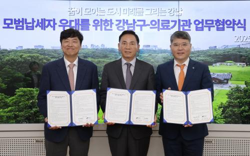 [½Åµ¿¾Æ¹æ¼Û °­³²±¸=À̽ŵ¿±âÀÚ] ²ÞÀÌ ¸ðÀÌ´Â µµ½Ã, ¹Ì·¡¸¦ ±×¸®´Â °­³²±¸°¡ 23ÀÏ ±¸Ã»¿¡¼­ °­³²¼¼ºê¶õ½ºº´¿ø, ±¤µ¿º´¿ø°ú ÇÔ²² ¡®¸ð¹ü¡¤À¯°ø³³¼¼ÀÚ °Ç°­°ËÁø ¿ì´ë¸¦ À§ÇÑ ¾÷¹«Çù¾à¡¯À» ü°áÇß´Ù. À̹ø Çù¾àÀº ¼º½ÇÇÏ°Ô ¼¼±ÝÀ» ³³ºÎÇÑ ¸ð¹ü¡¤À¯°ø³³¼¼ÀÚ¿¡°Ô °Ç°­°ËÁø¡¦