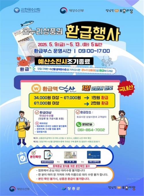[½Åµ¿¾Æ¹æ¼Û Àü³²ÀåÈï=¹Ú±¤¿Á±âÀÚ] ÀåÈﱺÀº 5¿ù °¡Á¤ÀÇ ´ÞÀ» ¸Â¾Æ ÀÌ´Þ 9ÀϺÎÅÍ 13ÀϱîÁö 5Àϰ£ ¿Â´©¸®»óǰ±Ç ȯ±ÞÇà»ç¸¦ ½Ç½ÃÇÑ´Ù°í ¹àÇû´Ù. À̹ø Çà»ç´Â ±¹³»»ê ¼ö»ê¹°ÀÇ ¼Òºñ ÃËÁø°ú Á¤³²ÁøÀåÈïÅä¿ä½ÃÀå Ȱ¼ºÈ­¸¦ À§ÇØ Á¤³²ÁøÀåÈïÅä¿ä½ÃÀå »ó¼³½ÃÀå ¼ö»ê¹° Äڳʿ¡¡¦
