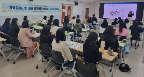 [½Åµ¿¾Æ¹æ¼Û Àü³²´ã¾ç=À̽ŵ¿±âÀÚ] ´ã¾ç±³À°Áö¿øÃ»Àº 7ÀÏ ´ãºû¹è¿òÅÍ 3Ãþ ´Ù¸ñÀû°­´ç¿¡¼­ ´ãºûÀÀ±Þ½É¸®Áö¿ø´Ü°ú ¿ÜºÎÀ§¿øÀ» ´ë»óÀ¸·Î ¡®Æ®¶ó¿ì¸¶ À§±â»ó´ãÀÇ ÀÌÇØ¿Í ½É¸®Àû ÀÀ±Þóġ¡¯¸¦ ÁÖÁ¦·Î À§±â°³ÀÔ ¿ª·®°­È­ »ó´ã±â¹ý ¿¬¼ö¸¦ ¿î¿µÇÏ¿´´Ù. À̹ø ¿¬¼ö´Â Çлý ¡¦
