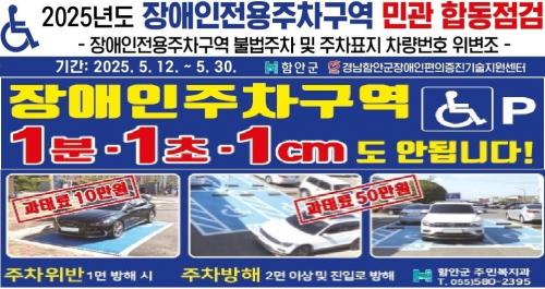 [½Åµ¿¾Æ¹æ¼Û °æ³²ÇÔ¾È=À̽ŵ¿±âÀÚ] ÇԾȱºÀº ÇԾȱºÆíÀÇÁõÁø±â¼úÁö¿ø¼¾ÅÍ ¹× Àå¾ÖÀÎÀÏÀÚ¸® ÁÖÂ÷µµ¿ì¹Ì¿Í ÇÔ²² ¿À´Â 30ÀϱîÁö Àå¾ÖÀÎÀü¿ëÁÖÂ÷±¸¿ª ¹Î․°ü ÇÕµ¿Á¡°ËÀ» ½Ç½ÃÇÑ´Ù°í ¹àÇû´Ù. ÇÕµ¿Á¡°ËÀº Àå¾ÖÀÎÀü¿ëÁÖÂ÷±¸¿ª¿¡ ´ëÇÑ À§¹Ý»çÇ× Á¡°Ë°ú ¿Ã¹Ù¸¥ Àå¾ÖÀÎÀü¡¦