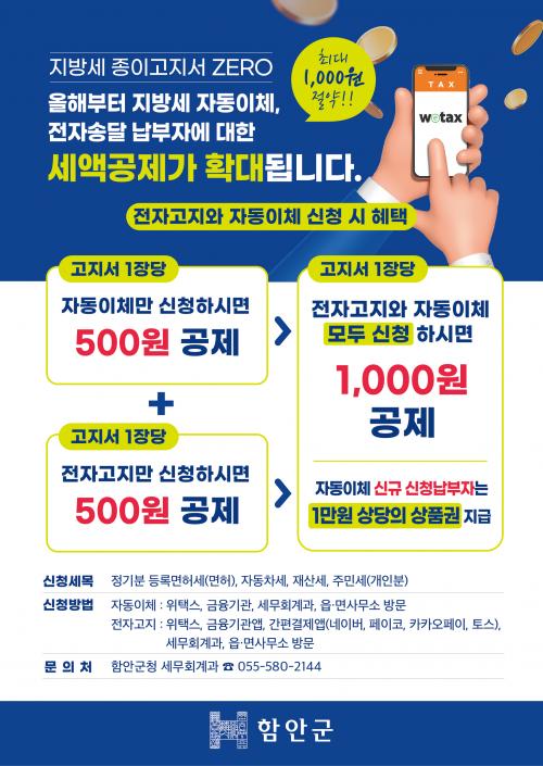 [½Åµ¿¾Æ¹æ¼Û °æ³²ÇÔ¾È=À̽ŵ¿±âÀÚ] ÇԾȱºÀº Áö¹æ¼¼ °íÁö¼­ ÀÚµ¿³³ºÎ¿Í ÀüÀÚ°íÁö¸¦ ½ÅûÇÑ ³³¼¼ÀÚ¿¡°Ô ¼¼¾×°øÁ¦¸¦ È®´ëÇÑ´Ù°í 15ÀÏ ¹àÇû´Ù. ÀüÀÚ°íÁö´Â ±âÁ¸ Á¾ÀÌ °íÁö¼­ ´ë½Å ÀüÀÚ¿ìÆíÀ̳ª ¸ð¹ÙÀÏ ¾ÛÀ¸·Î °íÁö¼­¸¦ ¹Þ´Â ¹æ½ÄÀ̸ç, ÀüÀÚ°íÁö¿Í ÀÚµ¿³³ºÎ Áß Çϳª¸¸ ½Å¡¦
