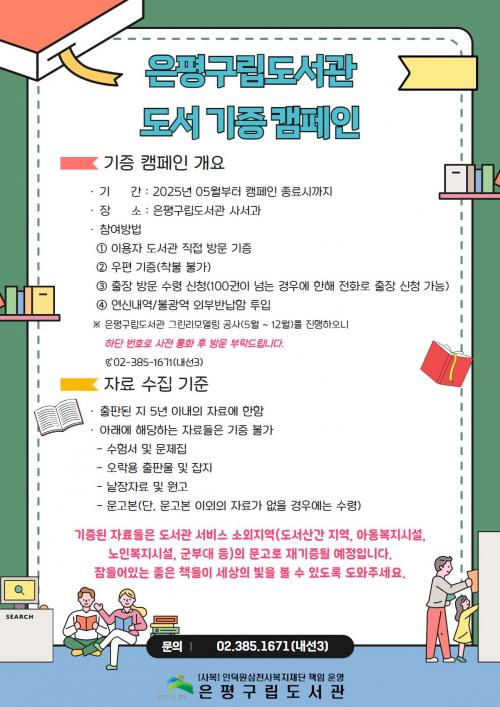 [½Åµ¿¾Æ¹æ¼Û ÀºÆò±¸=À̽ŵ¿±âÀÚ] ¼­¿ï ÀºÆò±¸´Â ÀºÆò±¸¸³µµ¼­°ü¿¡¼­ µµ¼­°ü ¼­ºñ½º ¼Ò¿Ü Áö¿ªÀ» Áö¿øÇϱâ À§ÇØ µµ¼­ ±âÁõ Ä·ÆäÀÎÀ» ÇÑ´Ù°í ¹àÇû´Ù. À̹ø Ä·ÆäÀÎÀº µµ¼­°ü ÀÌ¿ëÀÚµé·ÎºÎÅÍ »ç¿ëÇÏÁö ¾Ê´Â ¾çÁúÀÇ µµ¼­¸¦ ±âÁõ¹Þ¾Æ µµ¼­°ü Á¢±Ù¼ºÀÌ ³·Àº Áö¿ª¿¡ Àü´ÞÇØ ¡¦