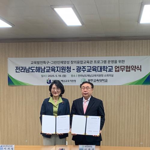 [½Åµ¿¾Æ¹æ¼Û Àü³²Çس²=À̽ŵ¿±âÀÚ] ÇØ³²±³À°Áö¿øÃ»°ú ±¤ÁÖ±³À°´ëÇб³´Â 5¿ù 19ÀÏ ÇØ³²±³À°Áö¿øÃ» ¼ÒȸÀǽǿ¡¼­ Áö¿ª±³À° Çù·Â·Â°­È­¸¦ À§ÇÑ ¾÷¹«Çù¾à(MOU)À» ü°áÇß´Ù. À̹ø Çù¾àÀº ¾ç ±â°üÀÌ ¡®±³À°¹ßÀüƯ±¸ – ±×¸°ÀÎÀç ¾ç¼º âÀÇÀ¶ÇÕ±³À°°ü ÇÁ·Î±×·¥¡¯ ÃßÁø°ú¡¦