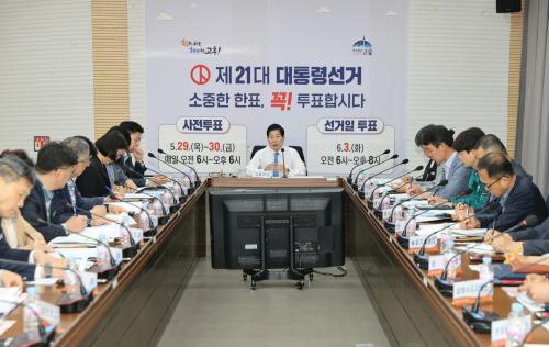 [½Åµ¿¾Æ¹æ¼Û Àü³²°íÈï=¹Ú±¤¿Á±âÀÚ] °íÈﱺ(±º¼ö °ø¿µ¹Î)ÀÌ Á¦21´ë ´ëÅë·É ¼±°Å¸¦ ¾ÕµÎ°í 21ÀÏ ½Ç´Ü°ú¼Ò ¹× À¾¸éÀåÀÌ Âü¿©ÇÏ´Â ¿µ»óȸÀǸ¦ °³ÃÖÇØ ¹ýÁ¤ ¼±°Å»ç¹«ÀÇ Ã¶ÀúÇÑ Áغñ¿Í ÇÔ²² ¿ª´ë ÃÖ°í ¹× Àü±¹ ÃÖ°í ÅõÇ¥À² ´Þ¼ºÀ» À§ÇÑ ¹æ¾ÈÀ» ³íÀÇÇß´Ù. À̳¯ ȸÀÇ¿¡¼­ °ø¿µ¡¦