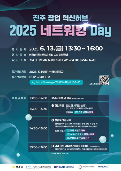 [½Åµ¿¾Æ¹æ¼Û °æ³²ÁøÁÖ=³²±Ã¿µ±â±âÀÚ] ÁøÁֽô Áö¿ª â¾÷ »ýŰè Ȱ¼ºÈ­¸¦ À§ÇÑ ´ë±Ô¸ð ±³·ù Çà»çÀΡ¸2025 ³×Æ®¿öÅ· Day¡¹°¡ ¿À´Â 6¿ù 13ÀÏ ¿ÀÈÄ 1½Ã 30ºÐ »óÆò»ê´ÜÇõ½ÅÁö¿ø¼¾ÅÍ 3Ãþ ÄÁº¥¼ÇȦ¿¡¼­ °³ÃÖµÈ´Ù°í ¹àÇû´Ù. À̹ø Çà»ç´Â ÁøÁÖ½Ã, °æ»ó±¹¸³´ëÇб³, Áß¼Òº¥Ã³¡¦