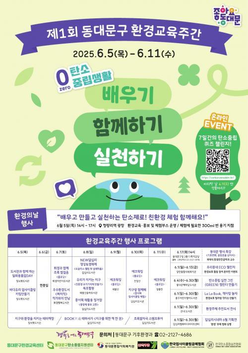 [½Åµ¿¾Æ¹æ¼Û µ¿´ë¹®±¸=À̽ŵ¿±âÀÚ] ¼­¿ï µ¿´ë¹®±¸´Â 6¿ù 5ÀÏ È¯°æÀÇ ³¯À» ½ÃÀÛÀ¸·Î 11ÀϱîÁö ÀÏÁÖÀϰ£ ¡®2025 µ¿´ë¹®±¸ ȯ°æ±³À°ÁÖ°£¡¯À» ¿î¿µÇÑ´Ù°í ¹àÇû´Ù. À̹ø ȯ°æ±³À°ÁÖ°£Àº ±âÈÄÀ§±â¿¡ ´ëÇÑ °æ°¢½ÉÀ» ³ôÀ̰í ź¼ÒÁ߸³ ½ÇõÀ» »ýȰȭÇÒ ¼ö ÀÖµµ·Ï ±¸¹Î ÀǽÄÀ» ¡¦