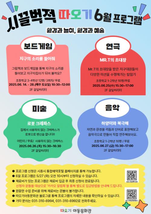 [½Åµ¿¾Æ¹æ¼Û ½ÃÈï½Ã=À̽ŵ¿±âÀÚ] ½ÃÈï½Ãµû¿À±â¾Æµ¿¹®È­°üÀº 6¿ù ȯ°æÀÇ ´ÞÀ» ¸Â¾Æ ¡®È¯°æ¡¯À» ÁÖÁ¦·Î ¾î¸°À̵éÀÇ Ã¢ÀǷ°ú °¨¼ö¼ºÀ» Ű¿ï ¼ö Àִ Ưº° ÇÁ·Î±×·¥À» ¿î¿µÇÑ´Ù. À̹ø ÇÁ·Î±×·¥Àº ȯ°æ¿¡ ´ëÇÑ ÀνÄÀ» ³ôÀ̰í, ³îÀÌ¿Í ¿¹¼úÀ» Á¢¸ñÇÑ Ã¼ÇèÀ» ÅëÇØ ÀÚ¿¬ÀÇ ¼ÒÁß¡¦