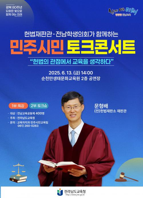 [½Åµ¿¾Æ¹æ¼Û Àü³²=À̽ŵ¿±âÀÚ] Àü¶ó³²µµ±³À°Ã»Àº 13ÀÏ ¿ÀÈÄ 2½Ã ¼øÃµ¸¸»ýŹ®È­±³À°¿ø¿¡¼­ ¹®Çü¹è Àü Çå¹ýÀçÆÇ¼Ò ÀçÆÇ°üÀ» ÃÊÃ»ÇØ, ¡®Çå¹ýÀçÆÇ°ü-Àü³²ÇлýÀÇȸ¿Í ÇÔ²²ÇÏ´Â ¹ÎÁֽùΠÅäÅ© Äܼ­Æ®¡¯¸¦ °³ÃÖÇÑ´Ù. À̹ø Çà»ç´Â ±¤º¹ 80ÁÖ³âÀ» ¸Â¾Æ, Çå¹ýÀÇ ¼ÒÁßÇÑ °¡Ä¡¸¦¡¦