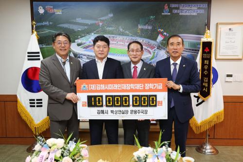 [½Åµ¿¾Æ¹æ¼Û °æ³²±èÇØ=³²±Ã¿µ±â±âÀÚ] ±èÇØ½Ã¹Ì·¡ÀÎÀçÀåÇÐÀç´ÜÀº 18ÀÏ ±èÇØ½Ã ¹Ú¼º¿¬ ±âȹÁ¶Á¤½ÇÀå, ¹®¿ëÁÖ ½Ã¹Î¾ÈÀü±¹ÀåÀÌ °øÁ÷ ÅðÀÓÀ» ¸Â¾Æ °¢°¢ 500¸¸¿øÀÇ ÀåÇбÝÀ» ±âŹÇß´Ù°í ¹àÇû´Ù. ¹Ú ½ÇÀåÀº 1989³â °øÁ÷¿¡ ÀÔ¹®ÇØ 36³â°£ ÀÏÀÚ¸®Á¤Ã¥°úÀå, Çõ½Å°æÁ¦±¹Àå, Çࡦ