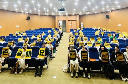 [½Åµ¿¾Æ¹æ¼Û °æ³²ÁøÁÖ=³²±Ã¿µ±â±âÀÚ] ÁøÁֽô 7¿ù 1ÀÏ °æ»ó±¹¸³´ëÇб³ ¹Ú¹°°ü 1Ãþ °­´ç¿¡¼­ µ¹º½³ëµ¿ÀÚ¿Í ½Ã¹Î 100¿© ¸íÀÌ ÇÔ²²ÇÏ´Â µ¹º½ ÅäÅ©Äܼ­Æ®¸¦ °³ÃÖÇß´Ù. À̹ø Çà»ç´Â ÁøÁֽà ¿©¼ºÄ£È­µµ½Ã Áö¿ªÆ¯¼ºÈ­ °ø¸ð»ç¾÷ÀÇ ÀÏȯÀ¸·Î ÁøÁÖ¿©¼ºÈ¸(´ëÇ¥ Àü¿ÁÈñ)°¡ ÁÖ°üÇÏ¡¦