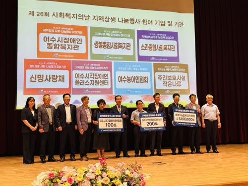 [½Åµ¿¾Æ¹æ¼Û ¿©¼ö=±è±â³² ±âÀÚ] µ¿¿©¼ö³ëÀκ¹Áö°üºÐ°ü(°üÀå ÀÌÈñ½Â)Àº MG»õ¸¶À»±Ý°í ¿©¼ö½ÃÇùÀÇȸ(ȸÀå °ø°æÅÃ)·ÎºÎÅÍ 500¸¸ ¿øÀÇ ÈÄ¿ø±ÝÀ» Àü´Þ¹Þ¾Ò´Ù°í ¹àÇû´Ù. MG»õ¸¶À»±Ý°í ¿©¼ö½ÃÇùÀÇȸ´Â 2021³âºÎÅÍ º¹Áö°ü¿¡ ÃÑ 2,000¸¸ ¿ø »ó´çÀÇ ÈÄ¿ø±ÝÀ» Áö¿øÇØ¿ÔÀ¸¸ç, ¡¦
