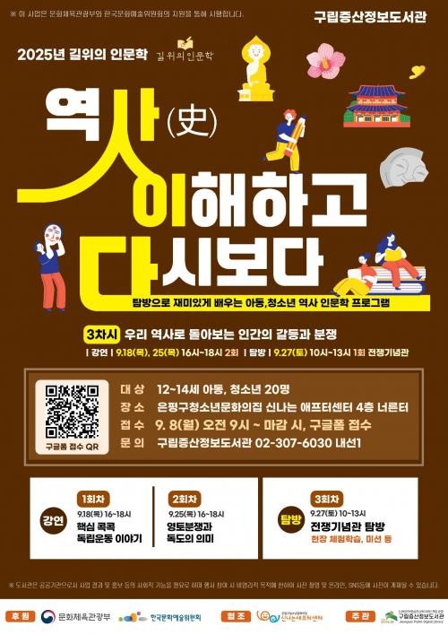 [½Åµ¿¾Æ¹æ¼Û ÀºÆò±¸=À̽ŵ¿±âÀÚ] ¼­¿ï ÀºÆò±¸´Â ±¸¸³Áõ»êÁ¤º¸µµ¼­°üÀÌ Áö¿ª û¼Ò³âÀ» ´ë»óÀ¸·Î ÇÑ Àι®ÇÐ ÇÁ·Î±×·¥ ¡®»ç(ÞÈ)ÀÌ´Ù: ¿ª»ç, ÀÌÇØÇÏ°í ´Ù½Ãº¸´Ù¡¯ 3Â÷½Ã¸¦ ¿î¿µÇÑ´Ù°í ¹àÇû´Ù. ÇÁ·Î±×·¥Àº ¹®È­Ã¼À°°ü±¤ºÎ¿Í Çѱ¹µµ¼­°üÇùȸ°¡ ÁÖÃÖÇÏ´Â ¡®2025³â ±æ À§ÀÇ ÀΡ¦