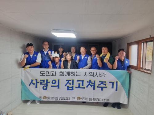 [½Åµ¿¾Æ¹æ¼Û °æ³²ÇÔ¾È=À̽ŵ¿±âÀÚ] ¹Ù¸£°Ô»ì±â¿îµ¿ ÇԾȱºÇùÀÇȸ´Â Áö³­ 9ÀÏ Ã»³âȸ°¡ ÁÖ°üÇÑ ¡®»ç¶ûÀÇ Áý °íÃÄÁֱ⡯ ºÀ»çȰµ¿¿¡ Âü¿©Çß´Ù. ȸ¿øµéÀº Ä¥ºÏ¸éÀÇ Àú¼Òµæ µ¶°Å³ëÀÎ °¡±¸¸¦ ¹æ¹®ÇØ ³ëÈÄ ÁÖÅÃÀ» Á¤ºñÇϸç ÁÖ°Åȯ°æ °³¼±¿¡ ÈûÀ» º¸ÅÉ´Ù. À̳¯ ºÀ»ç¿¡ Âü¿©¡¦