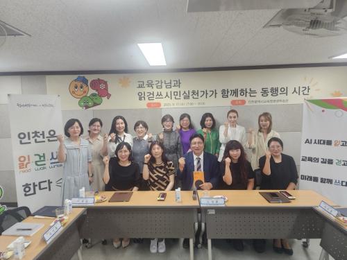 [½Åµ¿¾Æ¹æ¼Û ÀÎõ=À±¹Î½Ä±âÀÚ]µµ¼ºÈÆ ÀÎõ±¤¿ª½Ã±³À°°¨Àº 17ÀÏ ÀÎõÆò»ýÇнÀ°ü¿¡¼­ ¡®±³À°°¨°ú ÀаȾ² ½Ã¹Î½Çõ°¡ ¸®´õ°¡ ÇÔ²²ÇÏ´Â µ¿ÇàÀÇ ½Ã°£¡¯¿¡ Âü¼®ÇØ ¼ÒÅëÀÇ ½Ã°£À» °¡Á³´Ù. À̹ø °£´ãȸ´Â ÀÎõ±³À°Ã» ÇÙ½ÉÁ¤Ã¥ÀÎ ¡®ÀаȾ²¡¯ ½Çõ °æÇèÀ» °øÀ¯Çϰí ÇâÈÄ ¹ßÀü ¡¦