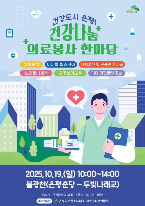 [½Åµ¿¾Æ¹æ¼Û ÀºÆò±¸=À̽ŵ¿±âÀÚ] ¼­¿ï ÀºÆò±¸´Â ¿À´Â 19ÀÏ ¿ÀÀü 10½ÃºÎÅÍ ¿ÀÈÄ 2½Ã±îÁö ºÒ±¤Ãµ¿¡¼­ ¡®°Ç°­µµ½Ã ÀºÆò! °Ç°­³ª´® ÀÇ·áºÀ»ç ÇѸ¶´ç¡¯ Çà»ç¸¦ °³ÃÖÇÑ´Ù°í ¹àÇû´Ù. À̹ø Çà»ç´Â ¼­¿ï½Ã ÀÇ·á±â»çÃÑ¿¬ÇÕȸ¿Í Çù·ÂÇØ ¸¶·ÃµÈ ÀÚ¸®´Ù. ÀÌ´Â ±¸¹Îµé¿¡°Ô ¿Ã¹Ù¸¥ °Ç¡¦