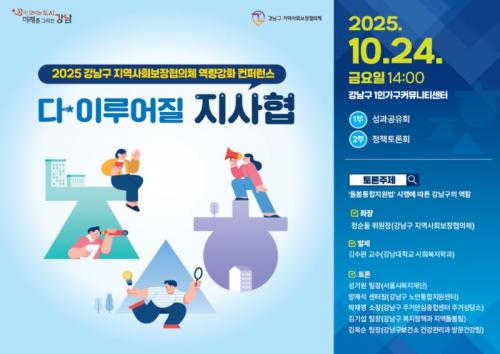 [½Åµ¿¾Æ¹æ¼Û °­³²±¸=À̽ŵ¿±âÀÚ] ²ÞÀÌ ¸ðÀÌ´Â µµ½Ã, ¹Ì·¡¸¦ ±×¸®´Â °­³²±¸°¡ ¿À´Â 10¿ù 24ÀÏ ¿ÀÈÄ 2½ÃºÎÅÍ 5½Ã 30ºÐ±îÁö °­³²±¸ 1Àΰ¡±¸Ä¿¹Â´ÏƼ¼¾ÅÍ¿¡¼­ Áö¿ª»çȸº¸ÀåÇùÀÇü À§¿ø ¹× ´ã´ç °ø¹«¿ø µî 100¿© ¸íÀÌ Âü¼®ÇÏ´Â ¡®°­³²±¸ Áö¿ª»çȸº¸ÀåÇùÀÇü ¿ª·®°­È­ ÄÁÆÛ·±½º¡¦