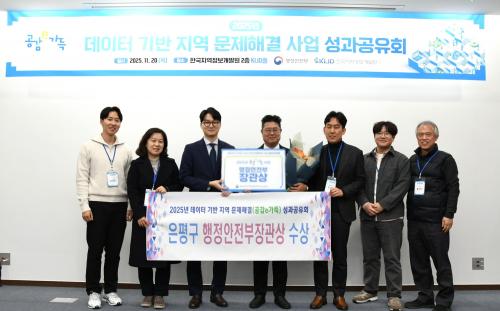 [½Åµ¿¾Æ¹æ¼Û ÀºÆò±¸=À̽ŵ¿±âÀÚ] ¼­¿ï ÀºÆò±¸´Â Áö³­ 20ÀÏ Çѱ¹Áö¿ªÁ¤º¸°³¹ß¿ø KLIDȦ¿¡¼­ ¿­¸° ¼º°ú°øÀ¯È¸¿¡¼­ ¡®2025³â µ¥ÀÌÅÍ ±â¹Ý Áö¿ª ¹®Á¦Çذá(°ø°¨e°¡µæ) »ç¾÷¡¯¿¡¼­ AI-IoT ±â¹Ý Àüµ¿º¸À屸 À̵¿ ¾ÈÀü Ç÷§Æû ±¸Ãà ¼º°ú¸¦ ÀÎÁ¤¹Þ¾Æ Çà¾ÈºÎÀå°ü»óÀ» ¹Þ¾Ò´Ù°í ¹àÇû¡¦