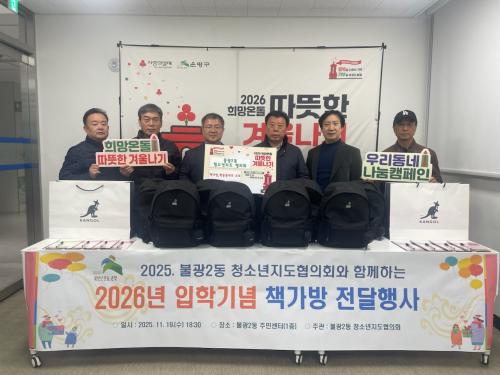 [½Åµ¿¾Æ¹æ¼Û ÀºÆò±¸=À̽ŵ¿±âÀÚ] ¼­¿ï ÀºÆò±¸ ºÒ±¤2µ¿Àº Áö³­ 19ÀÏ Ã»¼Ò³âÁöµµÇùÀÇȸ ÁÖ°üÀ¸·Î ³»³â 2026³âµµ Áß¡¤°íµîÇб³ ÀÔÇÐÀ» ¾ÕµÐ °ü³» ÇѺθð°¡Á¤ µî Àú¼Òµæ°¡Á¤ 8°¡±¸¿¡ Ã¥°¡¹æ°ú ÇпëǰÀ» Àü´ÞÇÏ´Â Çà»ç¸¦ °³ÃÖÇß´Ù°í ¹àÇû´Ù. û¼Ò³âÁöµµÇùÀÇȸ´Â ¸Å³â û¼Ò¡¦