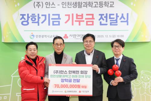[½Åµ¿¾Æ¹æ¼Û ÀÎõ=À±¹Î½Ä±âÀÚ]ÀÎõ±¤¿ª½Ã±³À°Ã»(±³À°°¨ µµ¼ºÈÆ)Àº 5ÀÏ ¡®¢ß¾È½º–ÀÎõ»ýȰ°úÇаí ÀåÇбâ±Ý Àü´Þ½Ä¡¯À» ¿­°í Áö¿ª ±â¾÷°úÀÇ Çù·ÂÀ» ±â¹ÝÀ¸·Î Á÷¾÷°è°í ÀÎÀç ¾ç¼º Áö¿øÀ» °­È­Çß´Ù. À̹ø Àü´Þ½ÄÀº ¢ß¾È½ºº£ÀÌÄ¿¸® ¾Èº¹Çö ȸÀåÀÌ »çȸº¹Áö°øµ¿¸ð±Ý¡¦