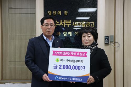[½Åµ¿¾Æ¹æ¼Û ¿©¼ö=±è±â³² ±âÀÚ] ¿©¼ö¼­ºÎ»õ¸¶À»±Ý°í(ÀÌ»çÀå Á¤±æ¿ë)´Â Áö¿ª»çȸ¿ÍÀÇ »ó»ýÀ» ½ÇõÇϱâ À§ÇÑ Áö¿ªÈñ¸Á°øÇå»ç¾÷ÀÇ ÀÏȯÀ¸·Î »õ¸¶À»ÁöµµÀÚ¿©¼ö½ÃÇùÀÇȸ(ȸÀå À̱âÀü)¿Í ¿©¼ö½Ã»õ¸¶À»ºÎ³àȸ(ȸÀå ±è¿µÈñ)¿¡ ÃÑ 400¸¸ ¿øÀÇ ±âºÎ±ÝÀ» Àü´ÞÇß´Ù. À̹ø ±âºÎ´Â¡¦