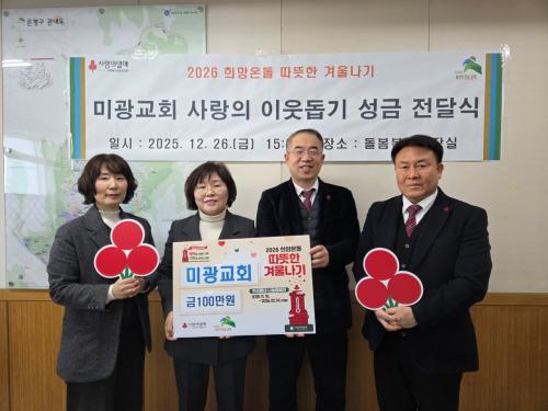 [½Åµ¿¾Æ¹æ¼Û ÀºÆò±¸=À̽ŵ¿±âÀÚ] ¼­¿ï ÀºÆò±¸´Â Áö³­´Þ 26ÀÏ ¹Ì±¤±³È¸¿Í 2026 Èñ¸Á¿Âµ¹ µû¶æÇÑ °Ü¿ï³ª±â »ç¶ûÀÇ ÀÌ¿ôµ½±â ¼º±Ý Àü´Þ½ÄÀ» °¡Á³´Ù°í ¹àÇû´Ù. À̳¯ ¹Ì±¤±³È¸´Â ¼º±Ý 1¹é¸¸ ¿øÀ» Àü´ÞÇß°í ±âºÎ¹ÞÀº ¼º±ÝÀº ³ª´®³×Æ®¿öÅ© »ç¾÷À» ÅëÇØ °ü³» »ýȰÀÌ ¾î·Á¿î °¡¡¦