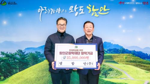 [½Åµ¿¾Æ¹æ¼Û °æ³²ÇÔ¾È=À̽ŵ¿±âÀÚ] ÇԾȱºÀº Áö³­ 5ÀÏ ¿¥ÇÔ¾È(ÁÖ)°¡ Áö¿ª ÀÎÀç À°¼ºÀ» À§ÇØ ÇԾȱºÀåÇÐÀç´Ü¿¡ ÀåÇбâ±Ý 2500¸¸ ¿øÀ» ±âŹÇß´Ù°í ¹àÇû´Ù. À̳¯ ±âŹ½Ä¿¡´Â ¿¥ÇÔ¾È(ÁÖ) ±èÅÂÈ£ »ó¹«°¡ Âü¼®ÇØ Áö¿ª ±³À° ¹ßÀü°ú ÀÎÀç ¾ç¼º¿¡ ´ëÇÑ ¶æÀ» ÀüÇϸç, ÇԾȱºÀ塦