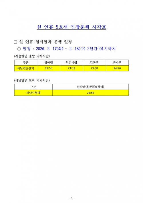[½Åµ¿¾Æ¹æ¼Û Çϳ²½Ã=À̽ŵ¿±âÀÚ] Çϳ²½Ã´Â ´Ù°¡¿À´Â ¼³ ¿¬ÈÞ¸¦ ¸Â¾Æ ±Í¼º°´°ú ½Ã¹ÎµéÀÇ ¾ÈÀüÇÏ°í Æí¸®ÇÑ ±Í°¡¸¦ µ½±â À§ÇØ ¿À´Â 2¿ù 17Àϰú 18ÀÏ ¾çÀϰ£ ÁöÇÏö 5È£¼±ÀÇ ¸·Â÷ ½Ã°£À» ¿¬Àå ¿îÇàÇÑ´Ù°í ¹àÇû´Ù. À̹ø ¿¬Àå ¿îÇàÀº ¸íÀý ±â°£ ½É¾ß ½Ã°£´ë ´ëÁß±³Åë ÀÌ¿ë ¡¦