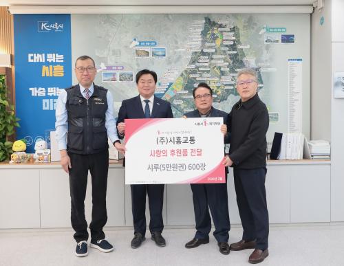 [½Åµ¿¾Æ¹æ¼Û ½ÃÈï½Ã=À̽ŵ¿±âÀÚ] ½ÃÈï½Ã´Â Áö³­ 2¿ù 26ÀÏ ¢ß½ÃÈï±³Åë¿¡¼­ Àú¼ÒµæÃþ Áö¿øÀ» À§ÇØ ½Ã·ç 5¸¸ ¿ø±Ç 600¿© ÀåÀ» ½ÃÈï½Ã1%º¹ÁöÀç´Ü¿¡ Àü´ÞÇß´Ù°í ¹àÇû´Ù. À̳¯ Àü´Þ½Ä¿¡ Âü¿©ÇÑ ¢ß½ÃÈï±³ÅëÀº ½ÃÈï½Ã û·æÀú¼öÁö±æ¿¡ º»»ç¸¦ µÐ Áö¿ª ´ëÇ¥ ¹ö½º¿î¼ö¾÷ü·Î, ½Ã¡¦