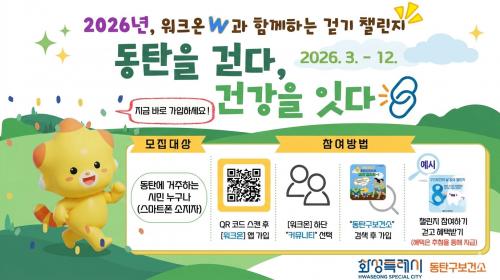 ¡°µ¿ÅºÀ» °È´Ù, °Ç°­À» ÀÕ´Ù¡±... È­¼ºÆ¯·Ê½Ã µ¿Åº±¸º¸°Ç¼Ò, 2026³â ¸ð¹ÙÀÏ ¿öÅ©¿Â °È±â »ç¾÷ ¿î¿µ