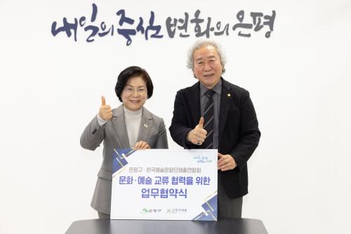 [½Åµ¿¾Æ¹æ¼Û ÀºÆò±¸=À̽ŵ¿±âÀÚ] ¼­¿ï ÀºÆò±¸´Â Áö³­ 4ÀÏ Çѱ¹¿¹¼ú¹®È­´ÜüÃÑ¿¬ÇÕȸ¿Í ÇÔ²² ¹®È­¡¤¿¹¼ú ±³·ù Çù·ÂÀ» À§ÇÑ ¾÷¹«Çù¾àÀ» ü°áÇß´Ù°í ¹àÇû´Ù. À̹ø Çù¾àÀº ÀºÆòÀ» ¹®È­¿¹¼ú ´ëÇ¥ µµ½Ã·Î ¹ßÀü½Ã۰í, ±¸¹Îµé¿¡°Ô Áö¼Ó °¡´ÉÇÑ ¹®È­¿¹¼ú ÇâÀ¯ ȯ°æÀ» Á¦°øÇϱ⡦