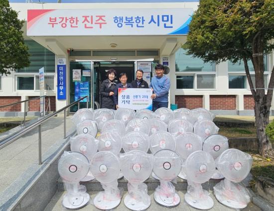 [½Åµ¿¾Æ¹æ¼Û °æ³²ÁøÁÖ=³²±Ã¿µ±â±âÀÚ] »ç´Ü¹ýÀÎ Çѱ¹¹æ¼ÛÀ½¾ÇÀÎ ¿¬ÇÕȸ´Â 3ÀÏ ¹Ìõ¸é»ç¹«¼Ò¸¦ ¹æ¹®ÇØ Áö¿ªÁÖ¹ÎÀÇ °Ç°­ÇÑ ¿©¸§ ´ëºñ¸¦ À§ÇØ ¼±Ç³±â 25´ë(125¸¸ ¿ø »ó´ç)¸¦ ±âºÎÇß´Ù°í ¹àÇû´Ù. À̹ø ±âºÎ´Â ¹Ìõ¸é °æ·Î´ç 23°÷°ú ¼±Ç³±â°¡ ¾ø°Å³ª ³ëÈÄÈ­µÈ °¡ÀüÁ¦Ç°À¸·Î¡¦